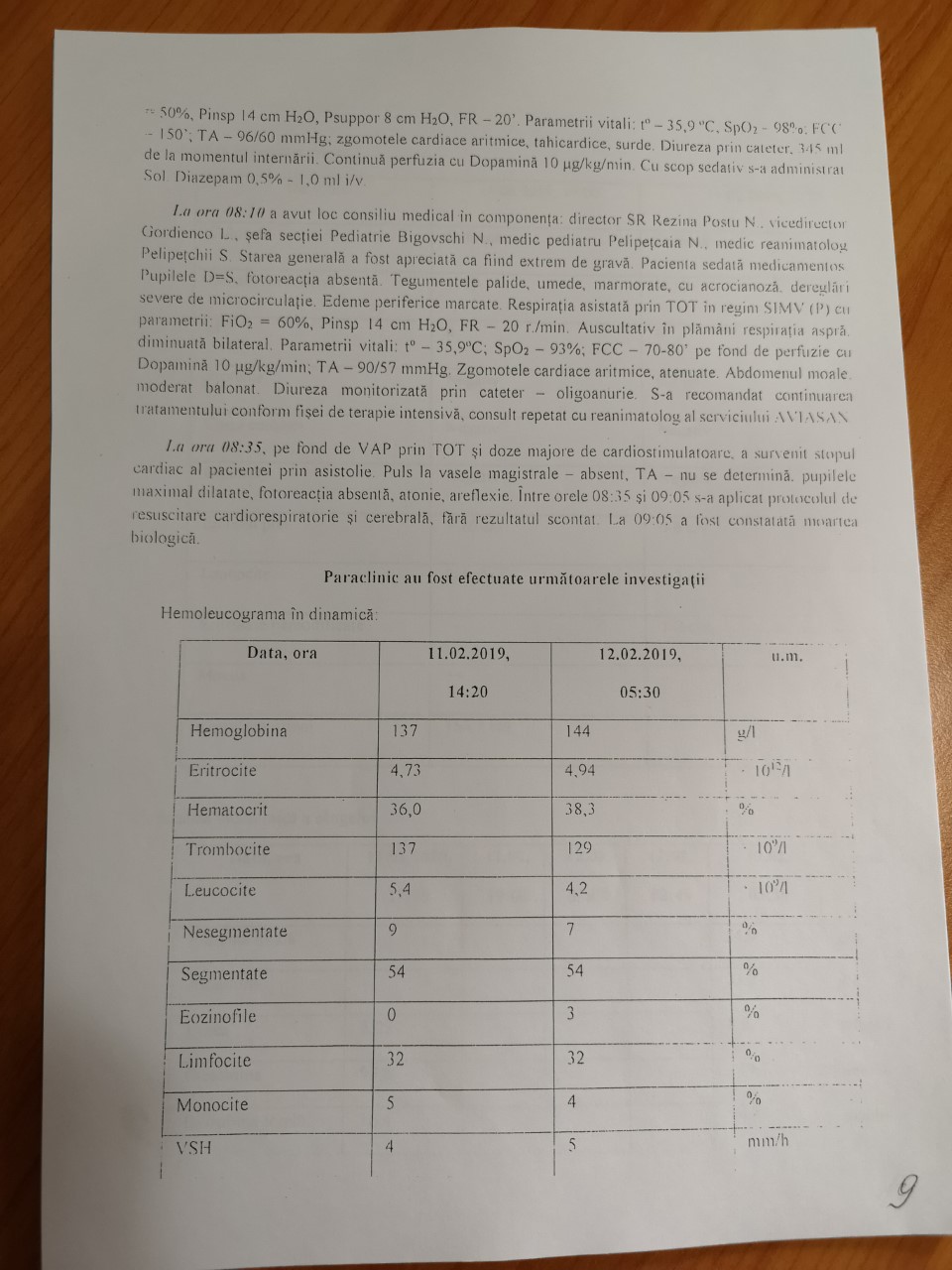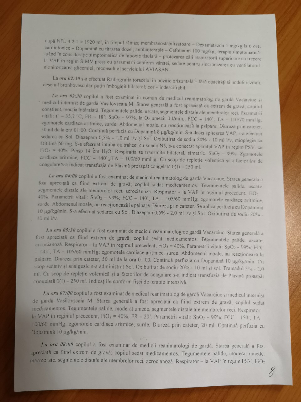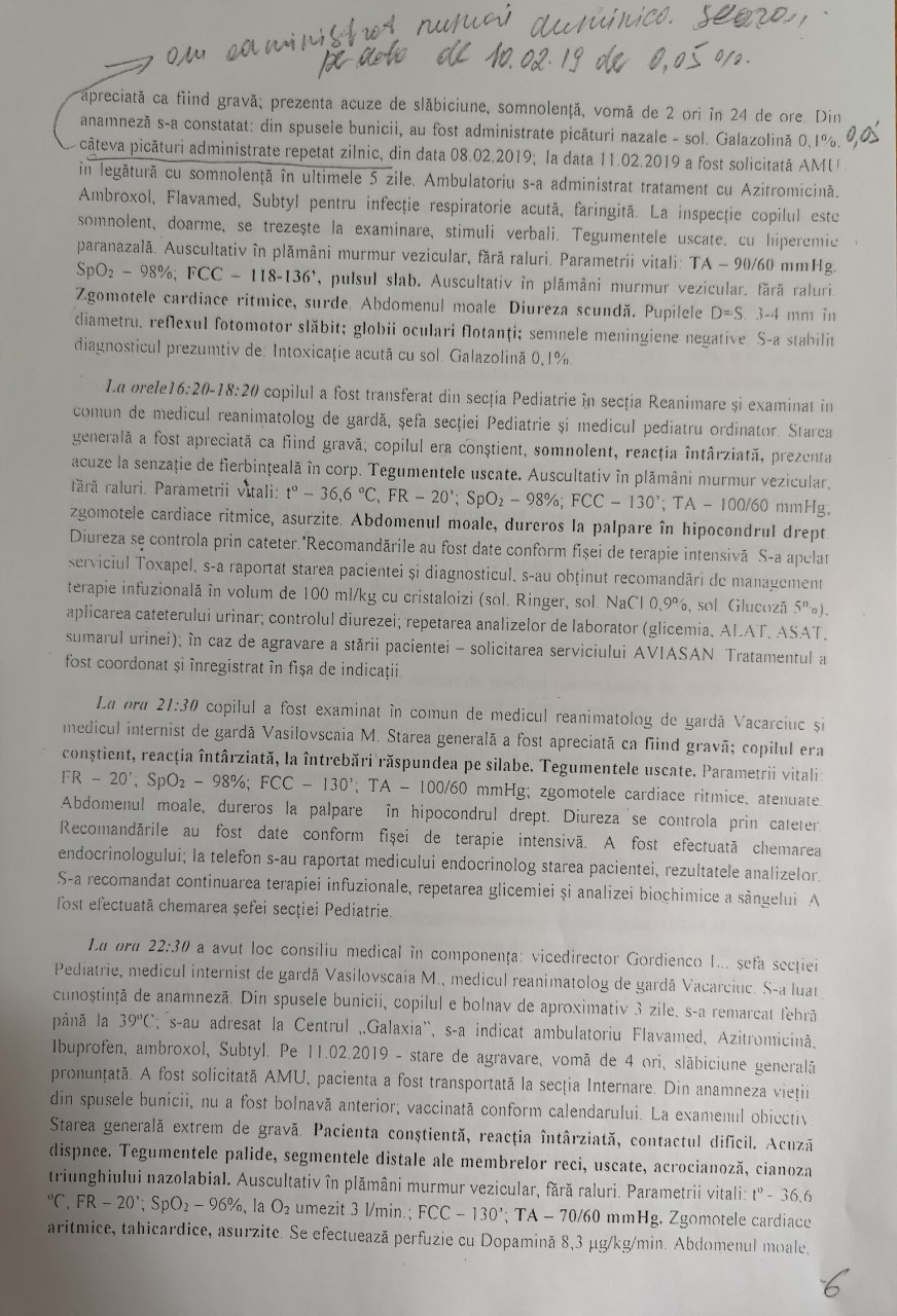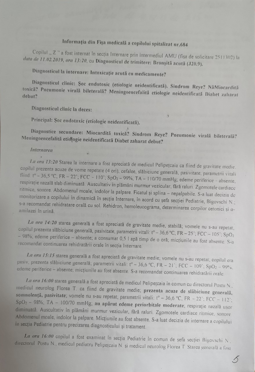 reanimatolog, lipsa descrierii evoluției stării generale a copilului, iar fișa