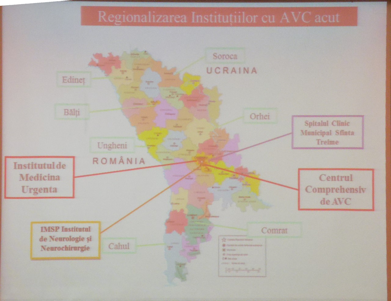 „Evident în Chișinău odată ce populația este mai mare, ar trebui să avem cel puțin 3-4 centre primare. Celelalte să fie amplasate în fostele spitale județene. Soroca, Bălți, Edineț, Ungheni, Orhei, Cahul, Comrat. Centrele ar trebui să asigure 7 zile din 7, 24 din 24 de ore servicii a echipelor multidisciplinare. Aici se va regăsi un medic urgentist, neurolog instruit în gestionarea bolilor cerebrovasculare- AVC, un imagist cu cunoștințe practice în diagnosticarea diferențiată prin tomografie computerizată a accidentului vascular cerebral, tehnicieni pentru tomografia computerizată, dar și o asistentă medicală, care să asigure injectarea trombolizei atunci când se decide că pacientul are un AVC ischemic”, explică Mihai Ciocanu, directorul Institutului de Medicină Urgentă.