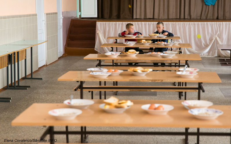 La gimnaziul din Hârtopul Mic nu găsim pe nimeni la ușa de la intrare. Într-un final, o doamnă ne spune să intrăm, ghidându-ne spre ușa administrației, dar suntem anunțați că tocmai a venit comisia de la Agenția Națională pentru Siguranță a Alimentelor și că va trebui să așteptăm. Femeia de serviciu ne conduce într-un hol și ne spune să așteptăm acolo, pentru că în școală nu este voie.