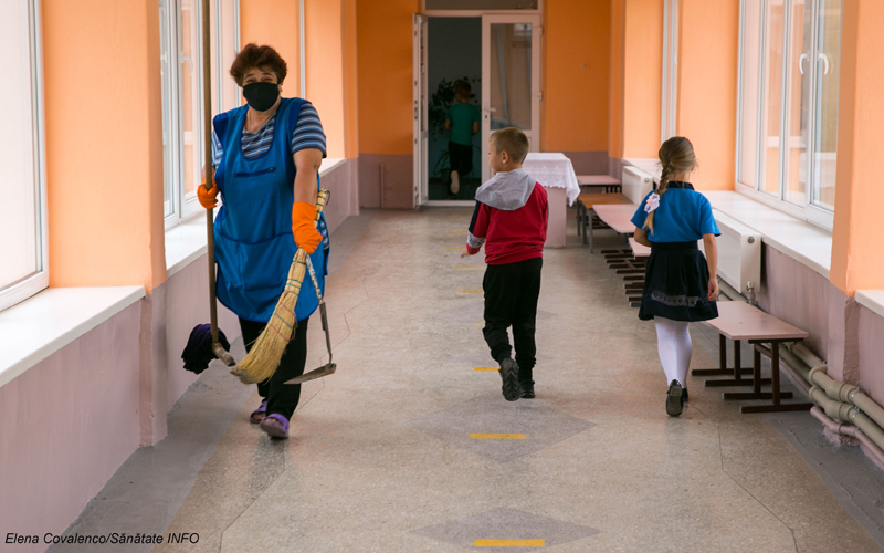 vrem să lucrăm. Fiecare clasă are dezinfectanți, căldare și mop, pentru că