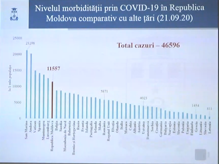 În Moldova se înregistrează o creștere continuă și uniformă a cazurilor de Covid-19, fără tendință de scădere, spun autoritățile. În creștere este și numărul deceselor. Numărul mare de cazuri înregistrate zilnic, situează Moldova în primele 10 țări din Europa, iar la capitolul mortalitate, în primele 30 de țări.