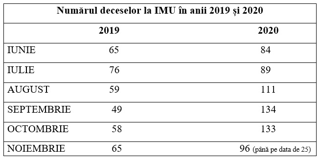În luna octombrie, au fost doar patru cazuri de deces din cauza maladiilor. Ceilalți au decedat din cauza complicațiilor provocate de noul coronavirus.