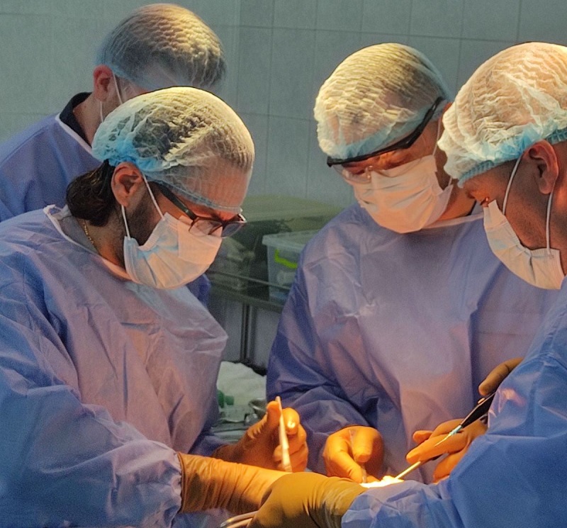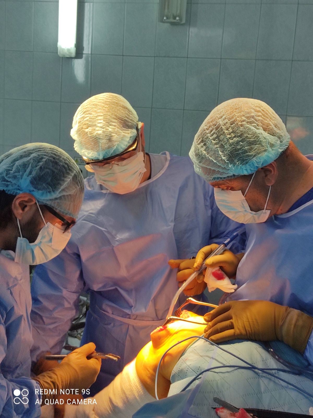 intervenție participă 3 medici chirurgi, un anesteziolog, o asistentă medicală