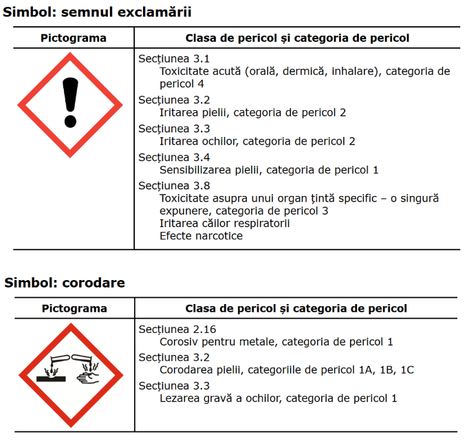 Pe ambalajele pliculețelor cu nicotină apar diverse simboluri de pericol pentru sănătate impuse de legislația privind substanțele periculoase. Două dintre aceste simboluri sunt: Semnul exclamării: Acest simbol avertizează asupra pericolelor precum toxicitatea acută (categoria 4), iritarea pielii (categoria 2), iritarea ochilor (categoria 2) și sensibilizarea pielii (categoria 1). Corodare: Acest simbol indică riscuri de corodare a pielii (categoriile 1A, 1B, 1C), lezarea gravă a ochilor (categoria 1) și corozivitate pentru metale (categoria 1). Este important de menționat că aceste simboluri nu se regăsesc exclusiv pe pliculețele cu nicotină, ci și pe alte produse chimice, inclusiv detergenți, care prezintă riscuri similare pentru sănătate.