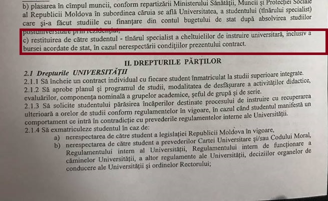 studenții trebuie să aibă în față un contract în care să fie indicată exact suma pe care trebuie să o restituie dacă nu se conformează prevederilor