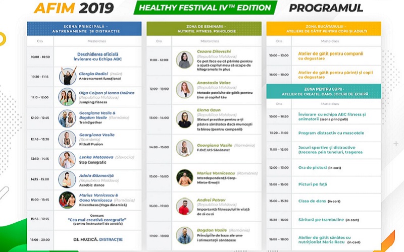 ABC Fitness School Moldova vă invită să petreceți ultimele zile ale lunii iunie în cadrul unui eveniment grandios. AFIM Healthy Festival, care va avea loc pe 22 iunie 2019, de la ora 10:00 în Gradina Botanica, este evenimentul care promovează stilul de viață sănătos printre adulți și copii.