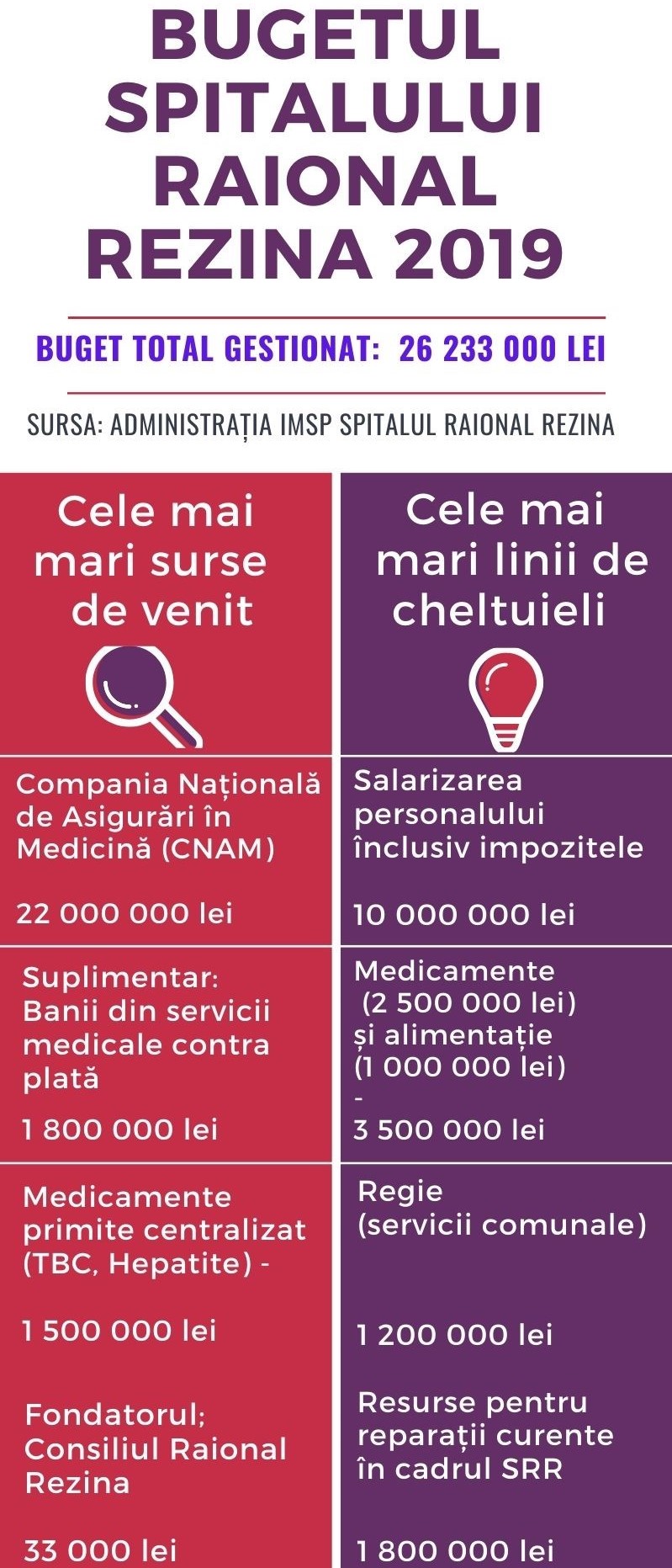 Rezina, prezentat de administrația instituției, aflăm că în 2019, grosul banilor - 22 de milioane de lei, au fost alocați de