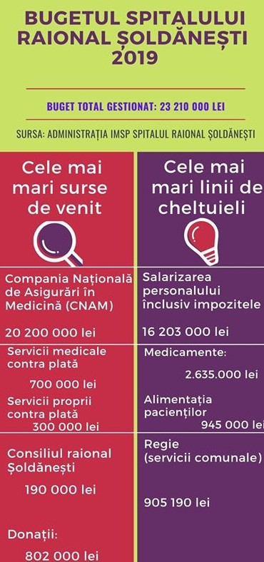 În comparație cu cele două spitale raionale, cel de la Șoldănești a avut anul trecut o